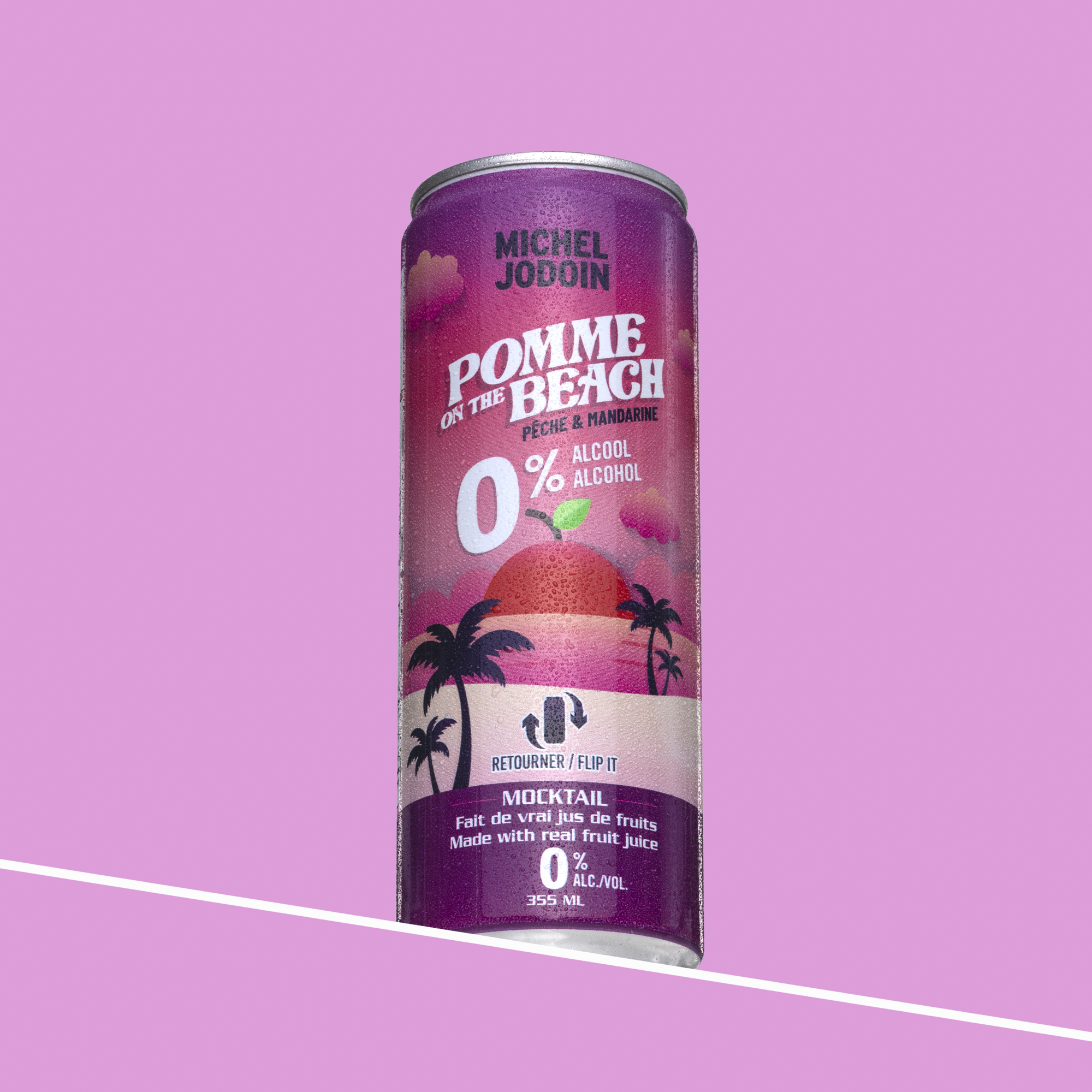 Ce mocktail est préparé principalement à base de notre moût de pomme. Nous y avons ajouté un concentré de mandarine et un concentré de Genava qui procurent la couleur et l’aspect trouble au produit. Une touche de zeste de citron et de mandarine est ajouté pour la fraîcheur et un arôme de pêche blanche qui rappel le Shnap au pêche – est ajouté pour un beau punch de saveur. Une touche incontournable qui apporte beaucoup de mordant au produit. Le produit est finalement gazéifié avant la mise en canette. Notes de dégustation : – Robe : Aspect orangée et trouble apporté par les concentrés et zestes de fruits naturels. L’aspect du produit rappel un cocktail fait maison. – Olfactif : Odeur prédominante de pêche juteuse et mûrie à point suivie de la mandarine qui apporte aussi fraîcheur et vivacité au produit. – Gustatif : Goût prédominant de pêche blanche bien mûre et juteuse. En fin de bouche une touche d’acidité de la mandarine et de la pomme Geneva. On sent de façon subtil les zestes de citron et de mandarine qui apporte beaucoup de fraîcheur. Un goût de revenez-y ! – Accompagnements : Votre cocktail incontournable autour d’un BBQ entre amis – d’un party estival autour de la piscine ou lors de vos rassemblements. Enfin une version de votre cocktail Pomme on the Beach préféré mais en version sans alcool et sans compromis sur le goût – vous verrez même les enfants et ados vont l’adopter !